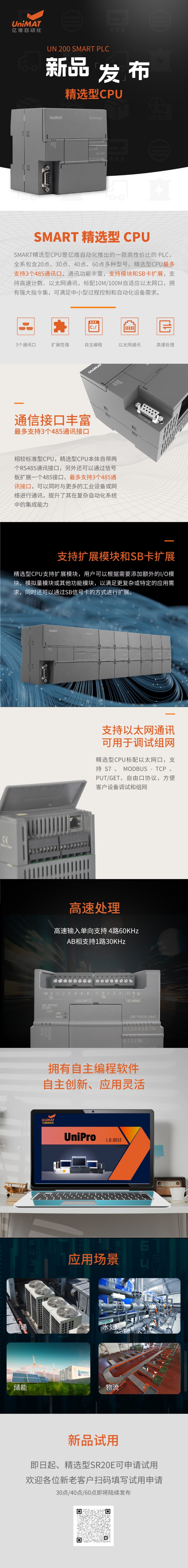 本著以客戶為中心的思想,公司廣泛聽取用戶意見和建議,致力于為客戶提供更加多樣化的產(chǎn)品選擇和更高性價比的解決方案。深入一線調(diào)研用戶需求,了解用戶痛點,基于用戶對高性價比、通訊接口等需求,正式推出SMART精選型和經(jīng)濟型CPU。