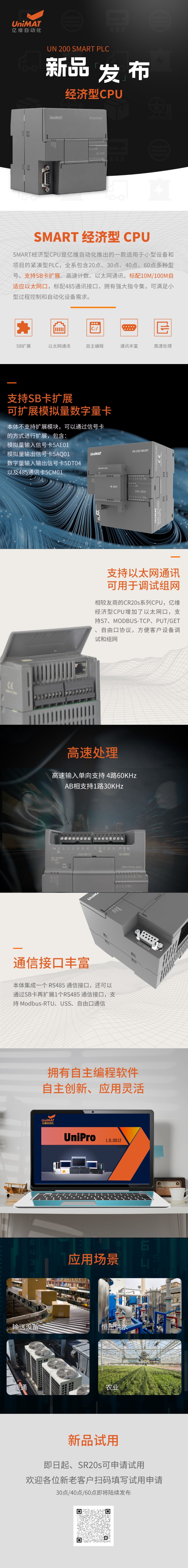 億維UN 200 SMART 系列 PLC在運算速度,網(wǎng)絡(luò)通訊,高速計數(shù),運動控制等功能上進行了全新升級,一經(jīng)推出就獲得廣大客戶的青睞,目前已廣泛應(yīng)用于暖通、水處理、包裝、物流等行業(yè),產(chǎn)品穩(wěn)定,性能卓著。