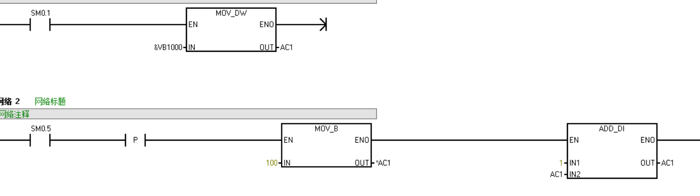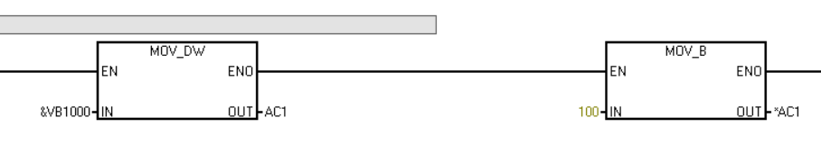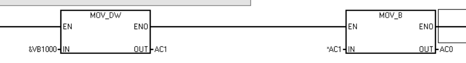 如上圖中VB1000就是所謂的地址指針(即VW1000的起始地址),*AC1是AC1所指向地址中的數(shù)據(jù)(AC1前加“*”號代表AC1為一個指針)。