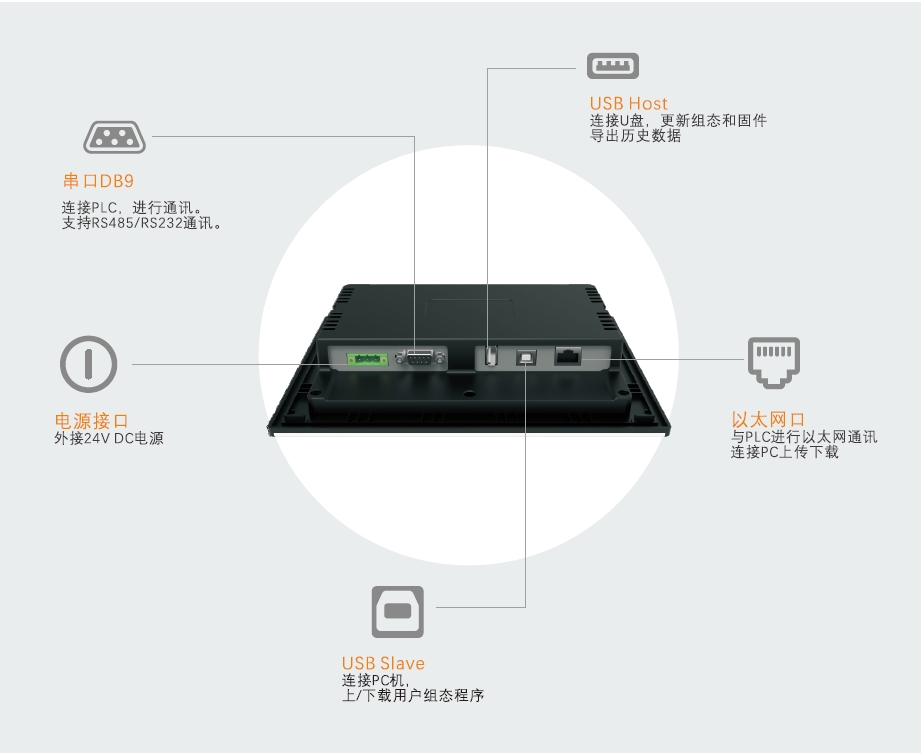 | USB Host | USB2.0 x 1, Type A(USB1),支持U盤更新固件、組態(tài)和存儲(chǔ)數(shù)據(jù) |